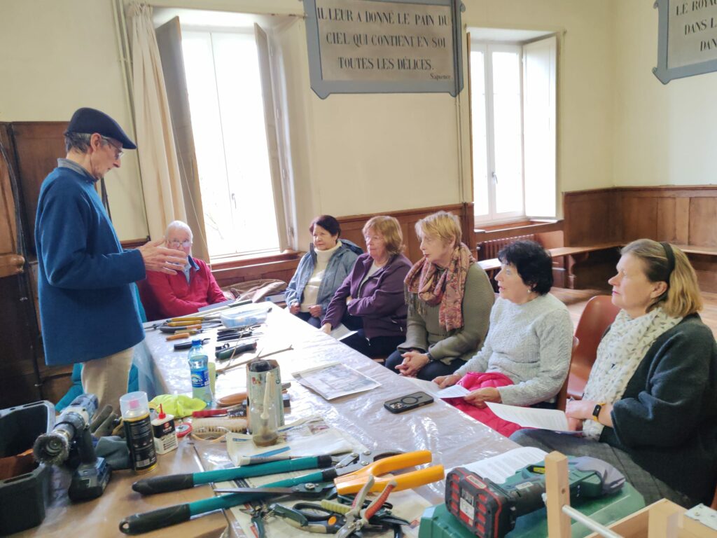 An indoor meeting at La Visitation covering Successes and failures in 2024 and a display of the pictures from recent garden visits (Jardin Rollon and Chateau de la Champ de la Pierre).